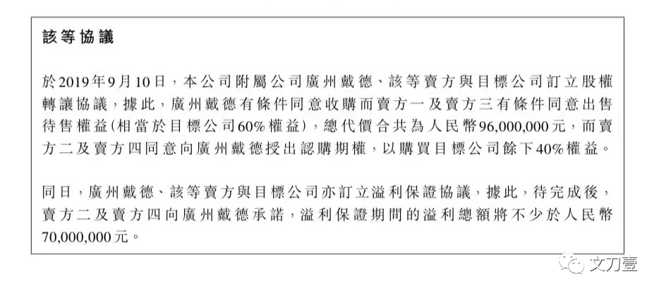 又留下对赌协议,三年完成7000万营业额,这7000万的收益决定着传递娱乐对剩下40%股权的回购价格。