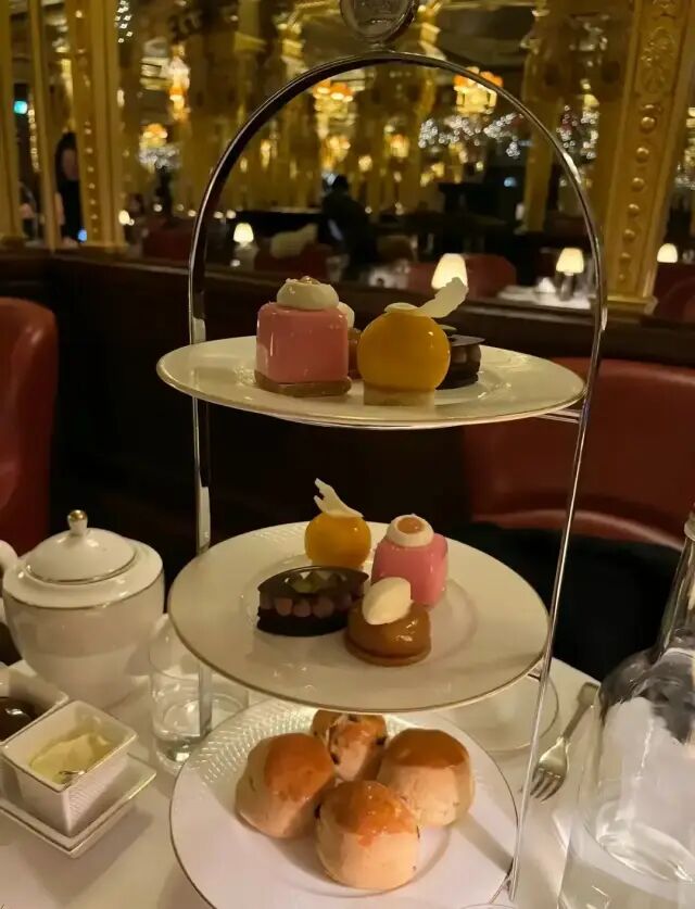 一共三层,分别都是一小块的糕点,尽管是我们农历的春节,但是在英国,李湘还是选择入乡随俗,品尝糕点。
