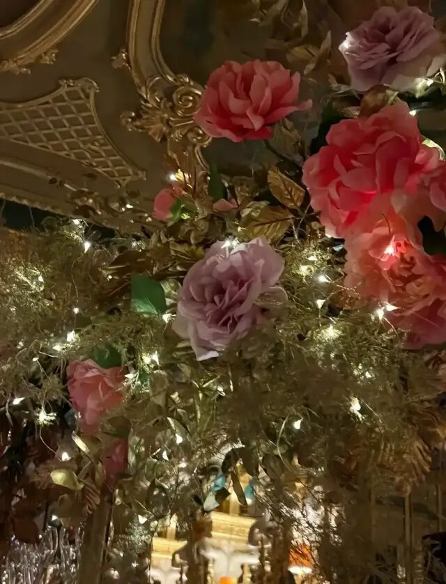 整个餐厅直接就是金灿灿的感觉,无论是棚顶的装饰还是餐厅的各处装饰,都透露着一股奢华的气息。
