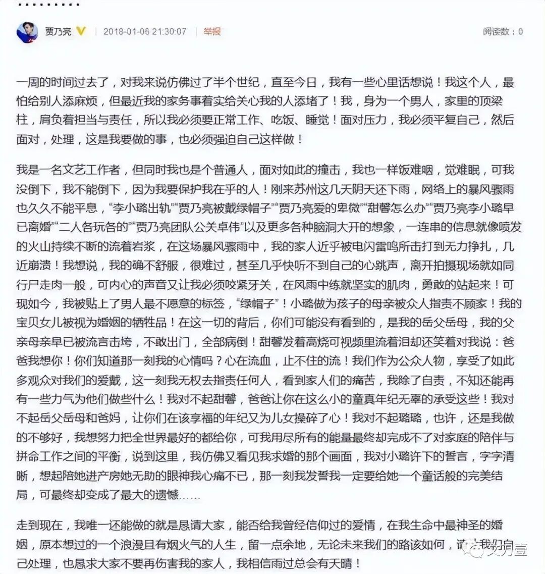 李小璐与贾乃亮的关系于两年后宣布告终。
