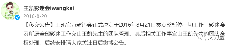 为此,王凯让团队直接接管了影迷会,然后当场宣布解散。