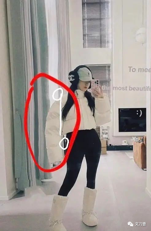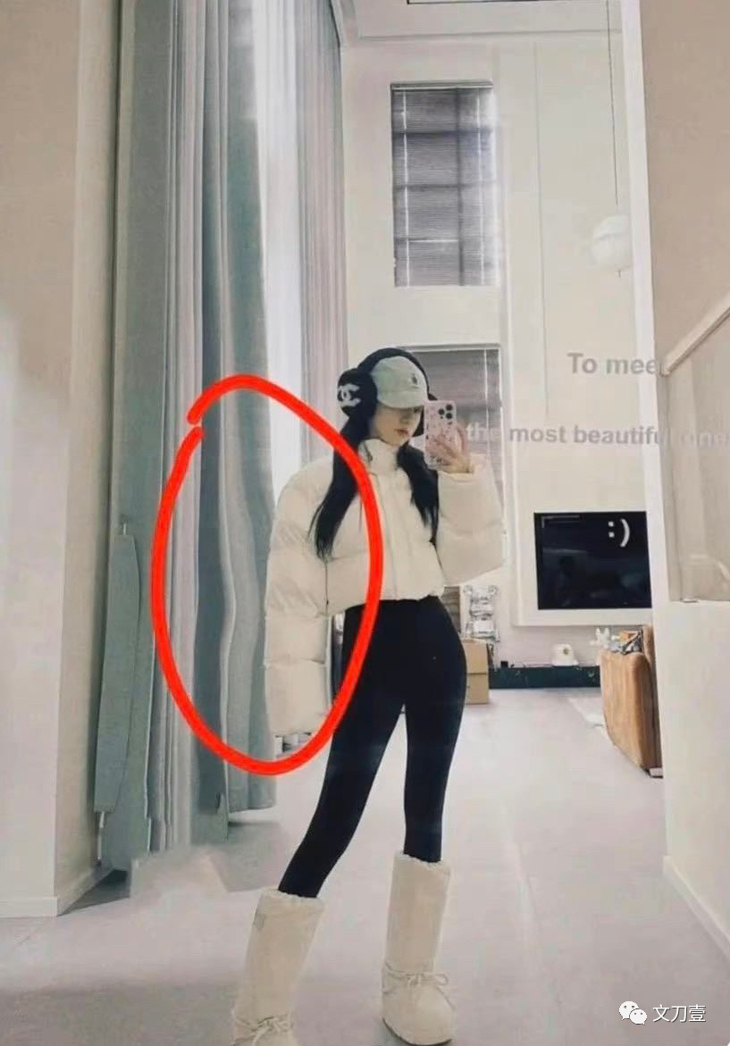从这组照片中能看出,赵露思在屋内穿着白色羽绒服,下身身穿紧身裤,站在镜子前拍照,但是p图的痕迹实在太明显,