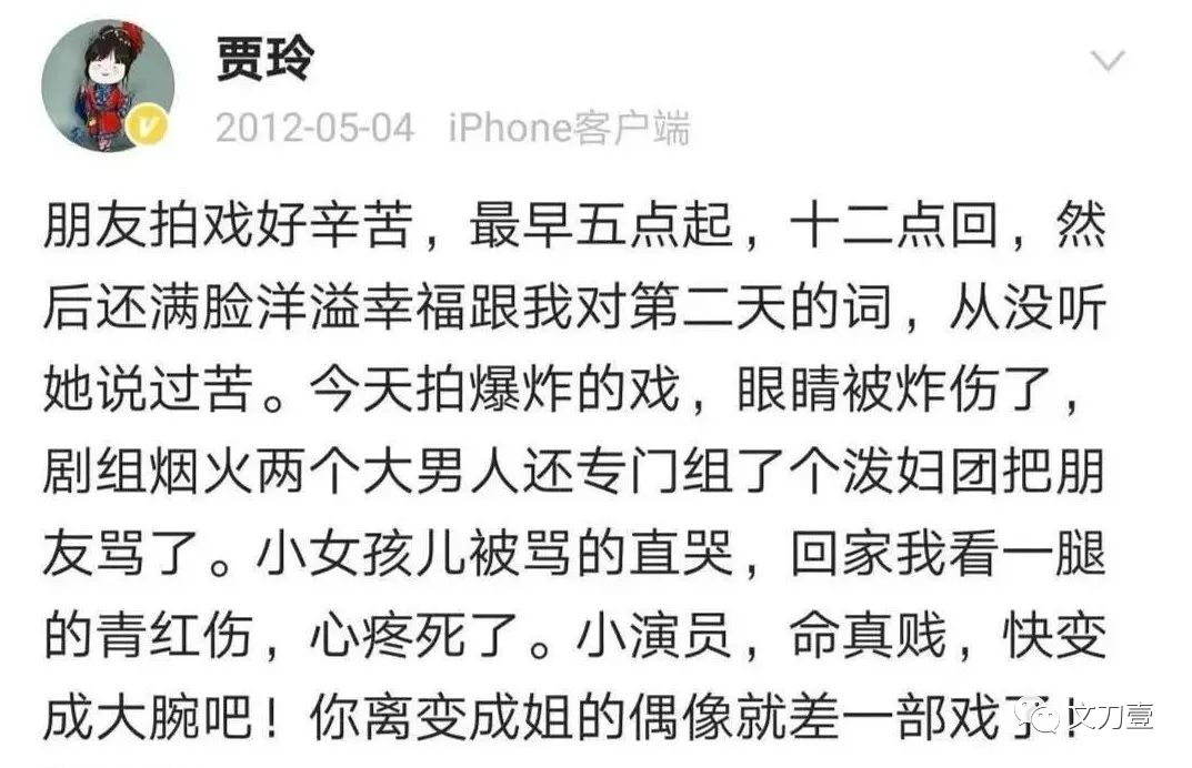 “心疼死了,小演员,命真贱,快变成大腕吧!你离变成姐的偶像就差一部戏了!”