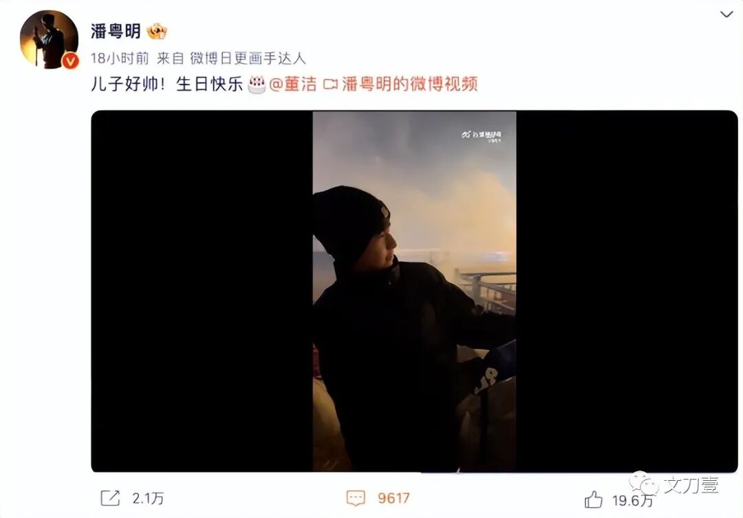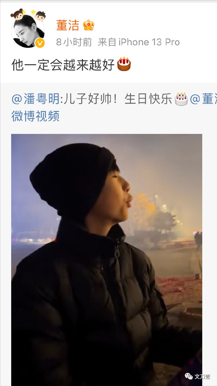 2月5日凌晨,潘粤明为儿子顶顶庆生,不过在这条博文中,潘粤明罕见的艾特了前妻董洁。