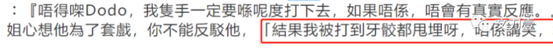 留下心理阴影的还有剧中饰演他妹妹的周海媚,被一连掌掴几十下,面部肿胀不堪。