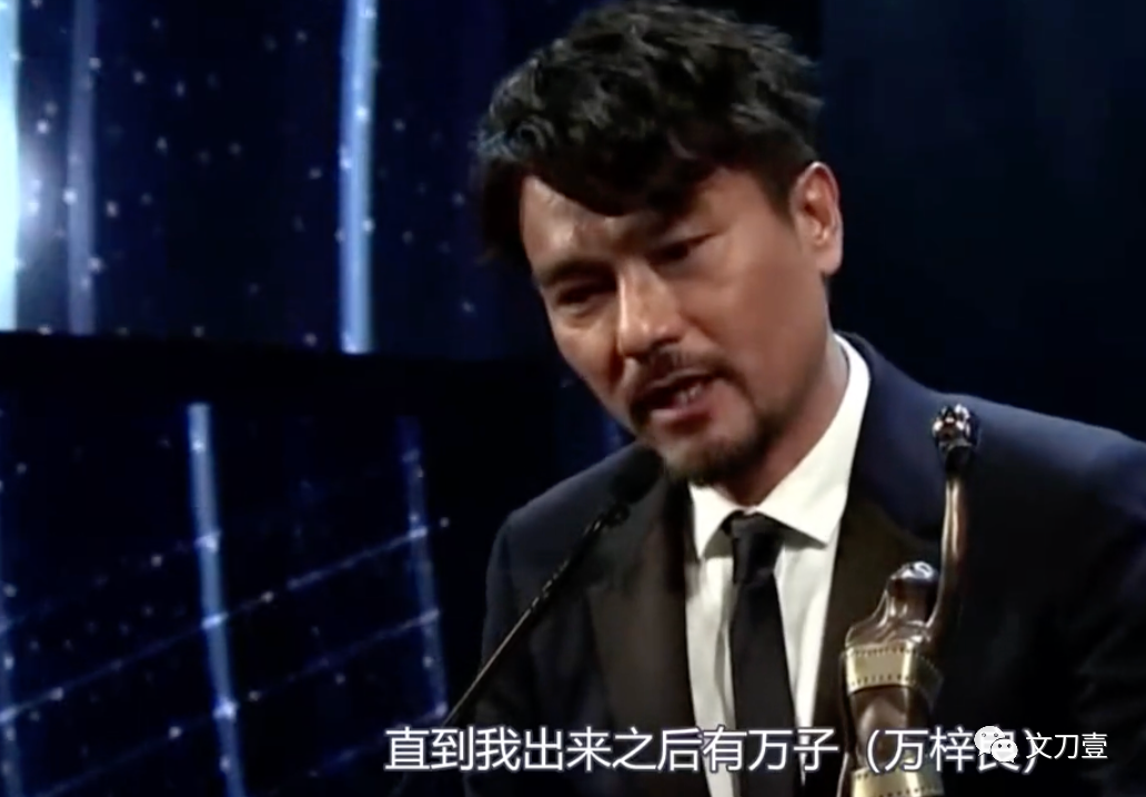 在颁奖典礼上,腼腆的他感谢了万梓良的提携。