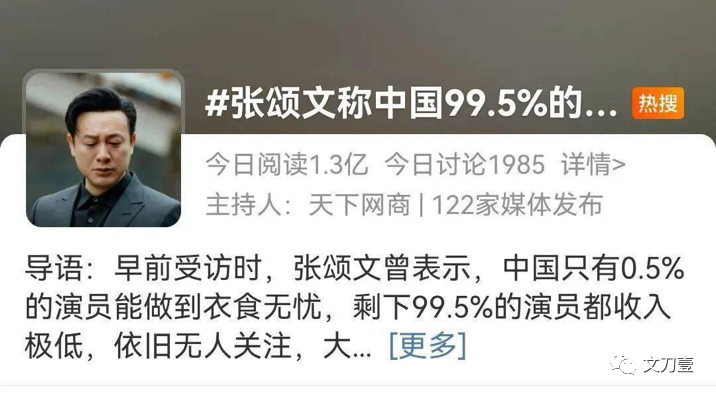 “中国只有0.5%的演员能做到衣食无忧,剩下99.5%的演员都收入极低。”