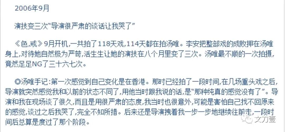三场大尺度床戏是汤唯永远的历史,弥新的将来。是非黑白席卷而来时,李安喊山相救,却并没有拉出石罅里的汤唯。
