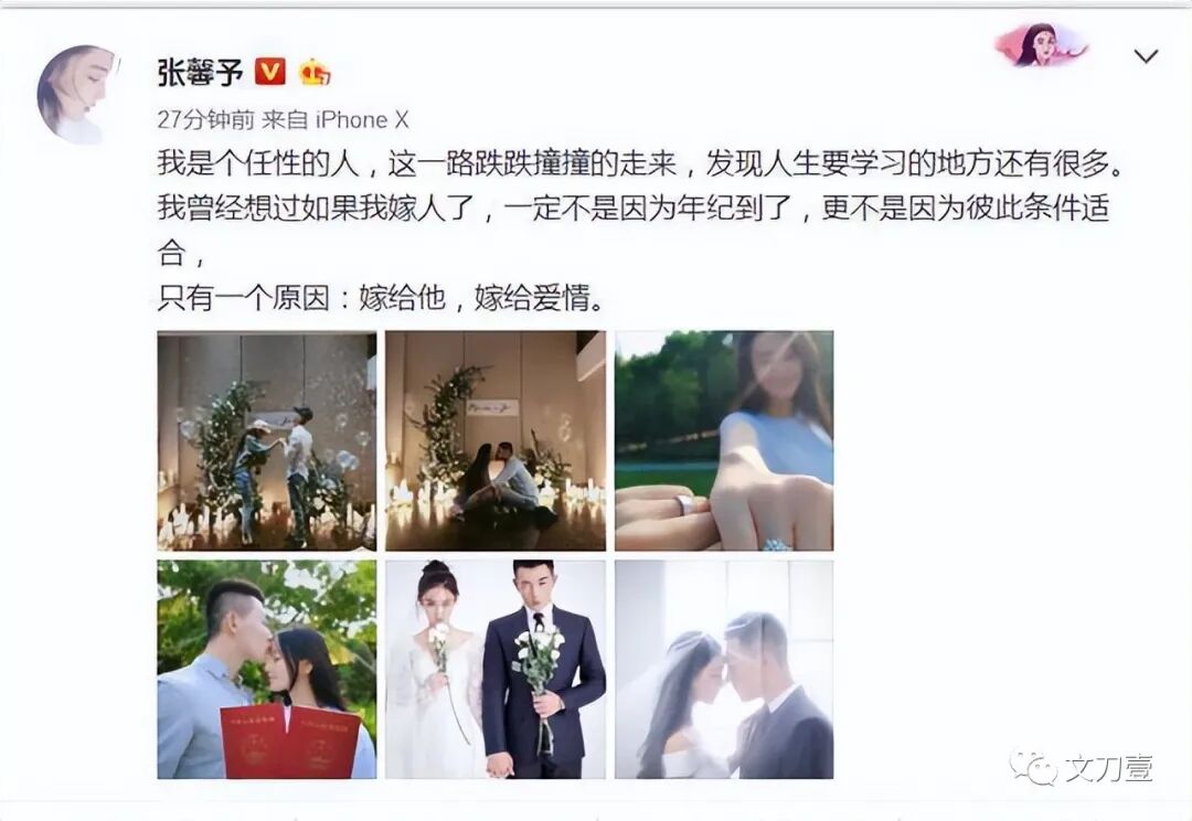 8月5日,张馨予官宣:“嫁给他,嫁给爱情。”