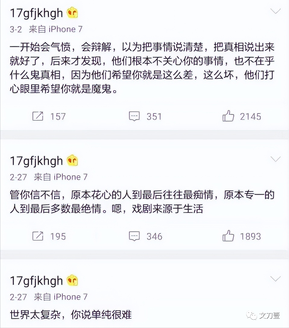 发现端倪的他,先是删除了博文,然后在分手后表示遗憾。