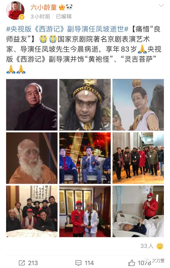 《西游记》导演任凤坡去世!曾在剧中客串多个角色,六小龄童发文悼念