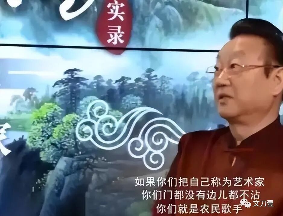 “农民就是农民,谈不上什么农民歌唱家,如果你们把自己称为艺术家,你们门都没有边儿都不沾,你们就是农民歌手。”