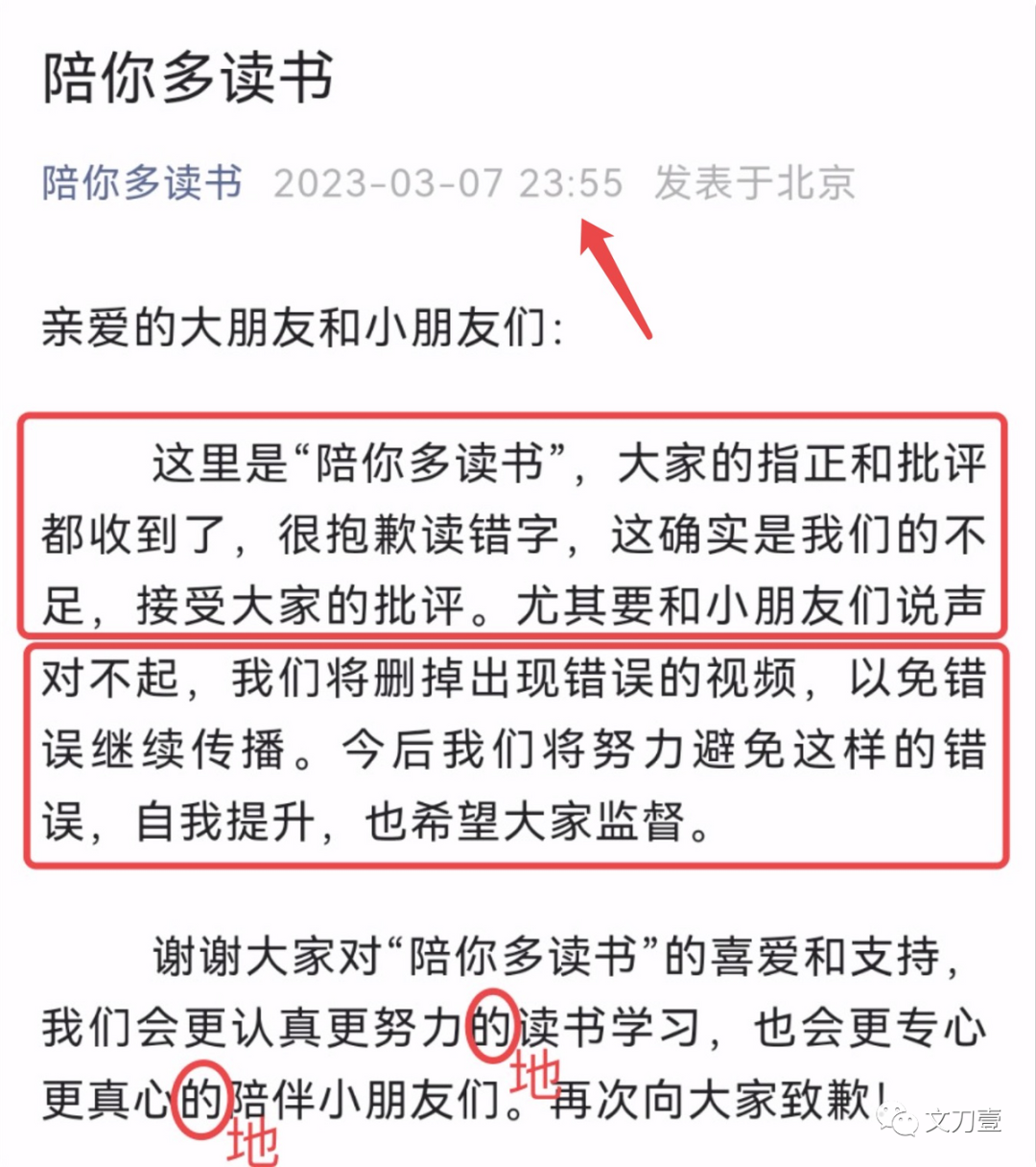 不过爱挑刺的网友又挑出了毛病,表示黄多多的这篇回应中,还是存在瑕疵,比如的地不分,还有奇怪的语法,如果按照正常的语法逻辑是很抱歉读错字,尤其要和小朋友说对不起,这确实是我们的不足,我们将删掉视频,一面继续传播。