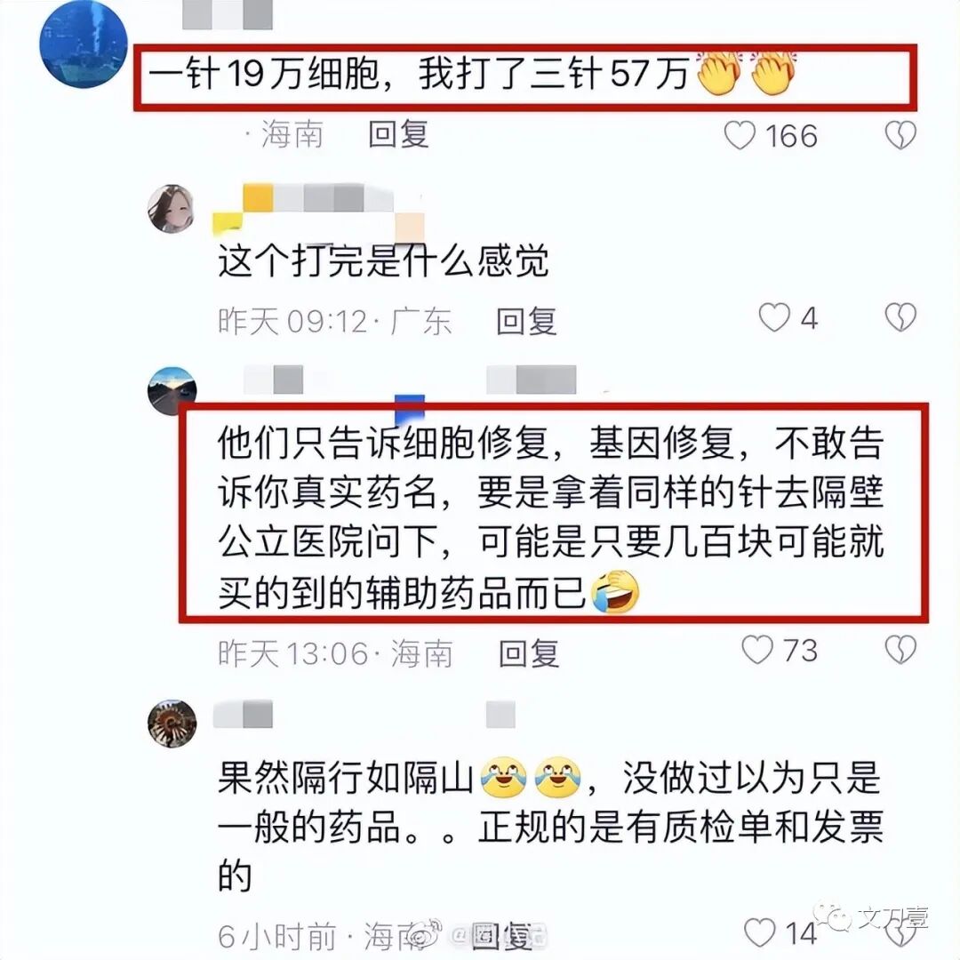 根据网友的爆料,这个针并不便宜,一针19万,每次起步要3针,也就是说这一套下来小60万,不得不说有钱人的生活果然我们普通人想象不到,