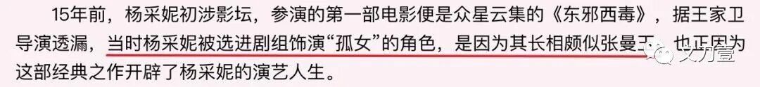 角色空缺,杨采妮因为长相酷似张曼玉被王家卫选中,