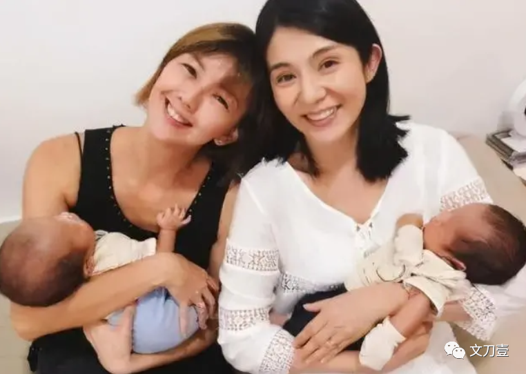 2017年,杨采妮冒着生命危险为邱韶智产下一对双胞胎儿子,