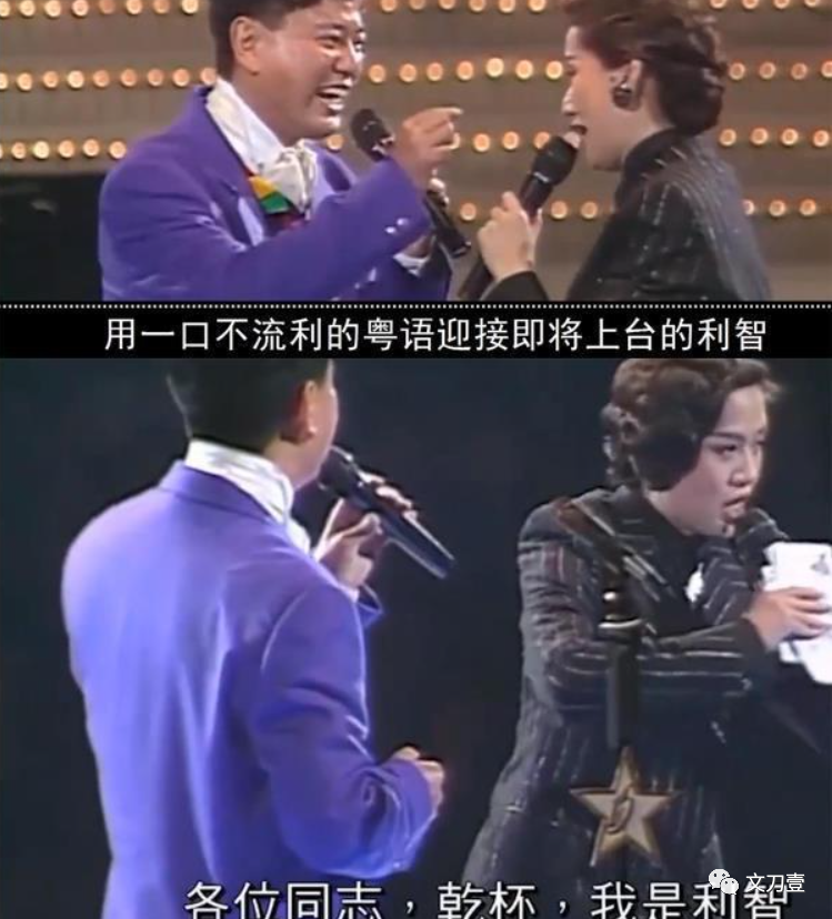 轮到利智上台时,梅艳芳故意用蹩脚的口音介绍利智,