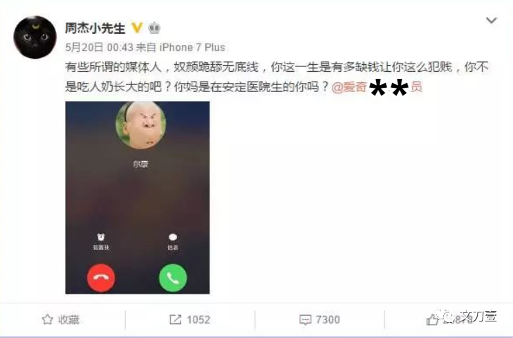 周杰直接对着无良媒体开喷:“有些所谓的媒体人,奴颜跪舔无底线,你这一生是有多缺钱让你这么犯贱。”