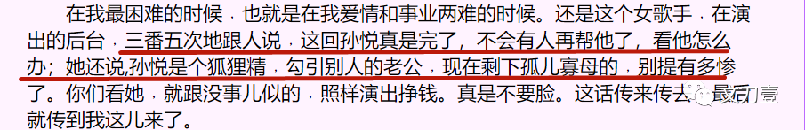 她跟别人说:“孙悦是狐狸精,这回真是完了,她终于出事了!”