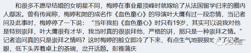 当后面传出梅婷的初恋是叶大鹰的消息时,在一次采访中,梅婷公开否认了此事,也澄清当初对他只是崇拜之情。