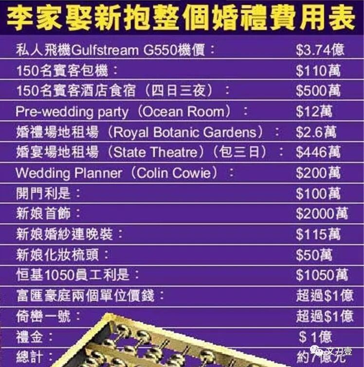 因此这场婚礼也是声势浩大、万众瞩目,总共花费高达7亿。