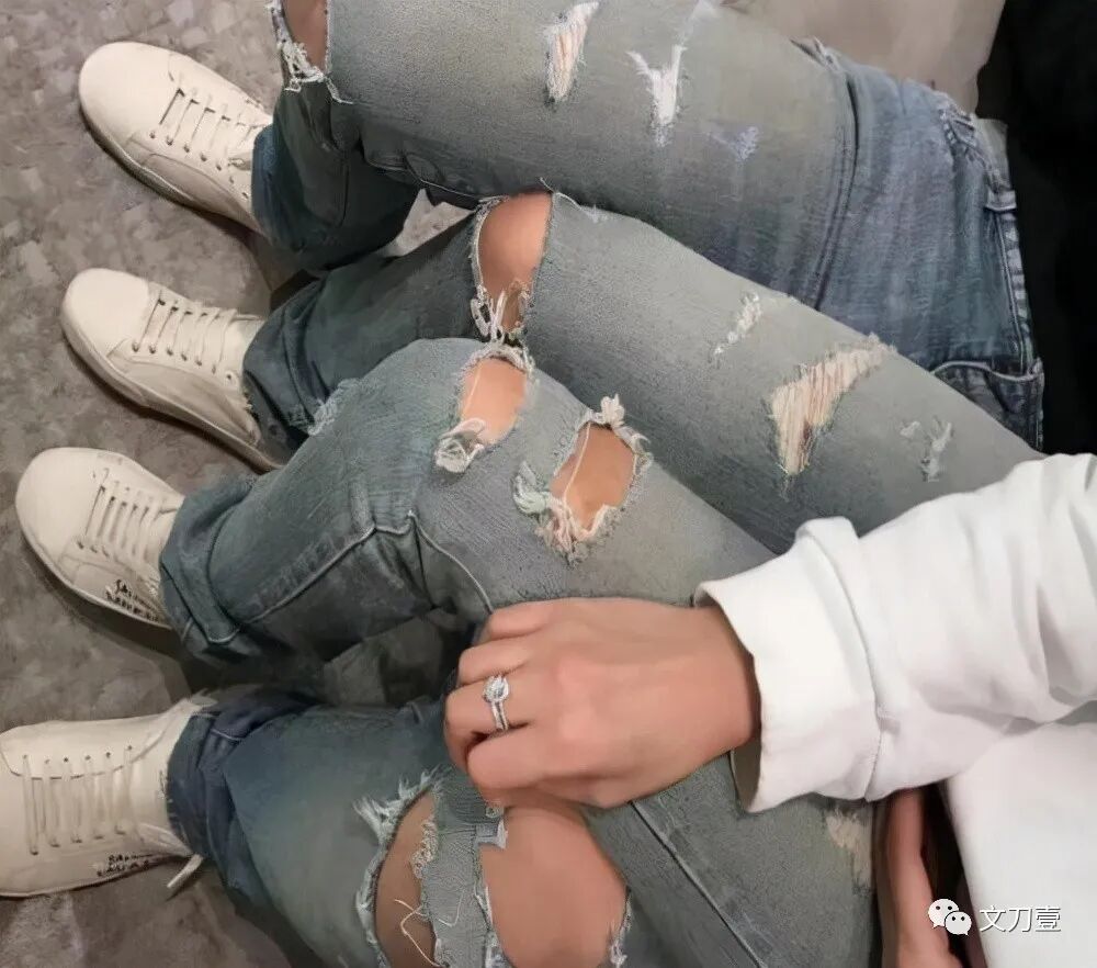 之后豆得儿在朋友圈发布了一张照片,两人身穿情侣装,而自己的手上戴着钻戒,