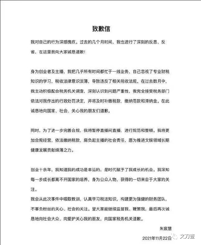 2021年11月22日,雪梨在偷税漏税的名单里结束了人生最后一个双11,