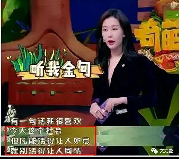 2018年,她上综艺节目《奇葩说》,发表了那一篇言论,说是如果能够让人活得嫉妒,就别让人活得同情。