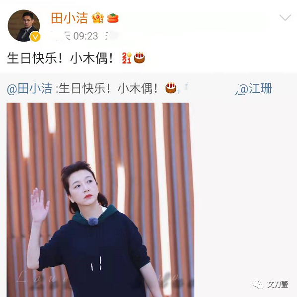 去年底,田小洁转发过往生日祝福,江珊也是第一时间回应。