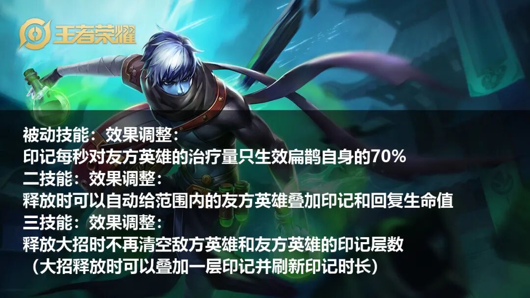 扁鹊印记每秒对友方英雄的治疗量在抢先服中只有50%,到了正式服直接提高到了70%,再加上二三技能的效果调整,扁鹊正式从下水道走了出来。