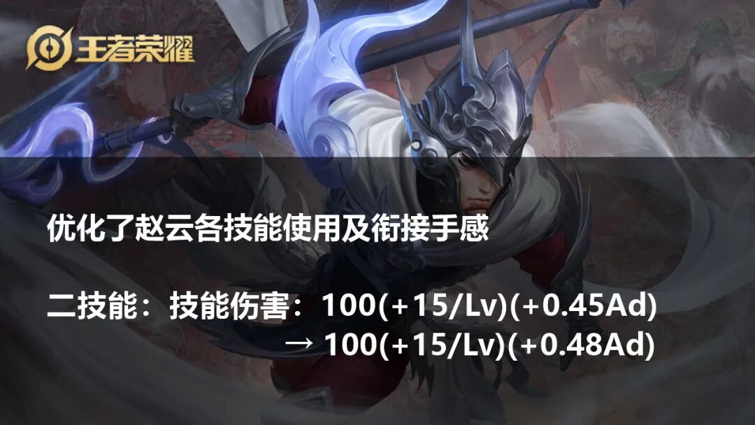 本来赵云只优化了技能手感,但没想到上线正式服之后还加强了二技能的AD加成伤害。