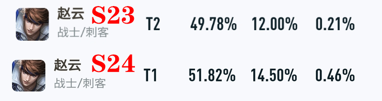 胜率毫无意外地上涨,想要练习打野的兄弟们老王依旧是推荐先从赵云学起,毕竟容错率比较高。