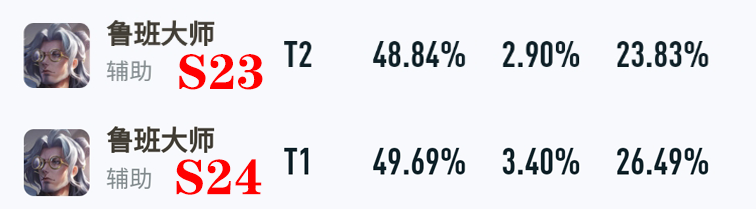 这波加强让鲁班大师的胜率稍微上升了一点,但是鲁班大师还是一个偏冷门又吃队友的辅助,出场率增加得不多。