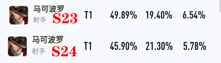 马可胜率已经排在了全英雄的倒数第一,之前马可只需要用一技能就可以,但在调整之后消耗能力大砍,更加需要大招配合被动来打伤害,许多玩家不适应或者操作差,从而导致胜率大跌。