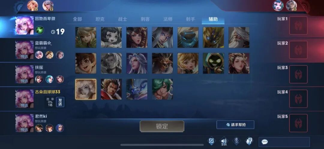 可当你们被系统“制裁”后,这个匹配的算法就会改变,三法师的玩家分分钟能再遇到两个同样设置三法师的队友。甚至可能出现图中这样,撞位置后就不想玩了,5个人乱选压根不想赢。