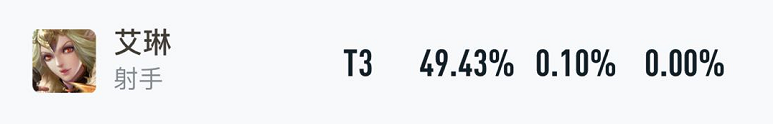说来也奇怪,在禁用英雄池里并没有禁用艾琳的选项,所以艾琳的禁用率为0%是必然的事。作为内测英雄,只有极少部分玩家才拥有,并且英雄机制已经有些过时了,正常玩家也不会在排位中使用她。