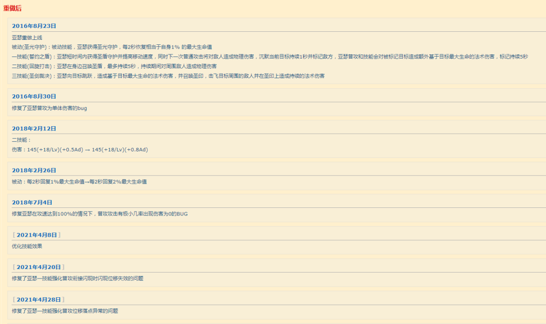 上面是亚瑟自16年后的部分调整记录,清一色的加强和优化,去年下半年甚至还提升了大招的伤害。