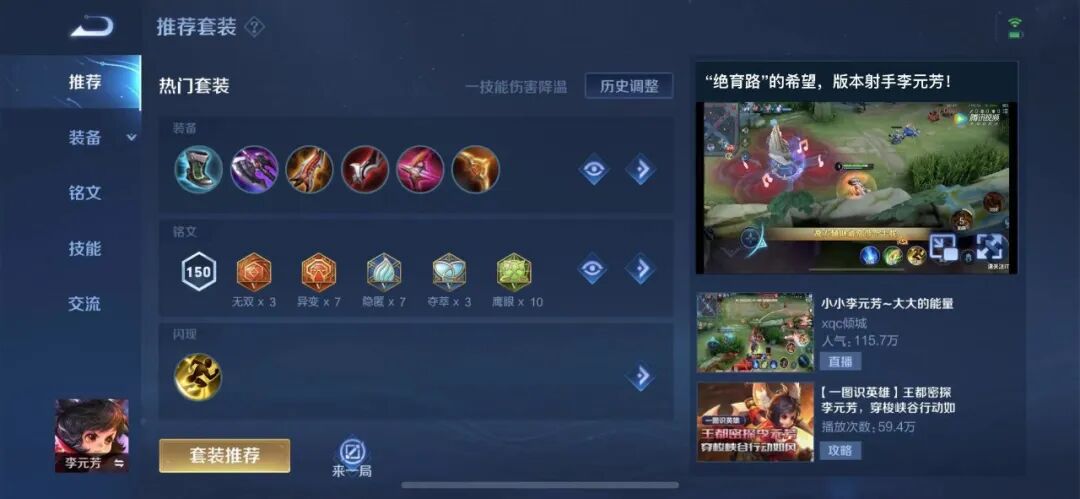 元芳是版本末期胜率最高的射手,顺风时有高额的爆发伤害,逆风也能凭借23技能进行防守,因此在中高分段也很吃香。