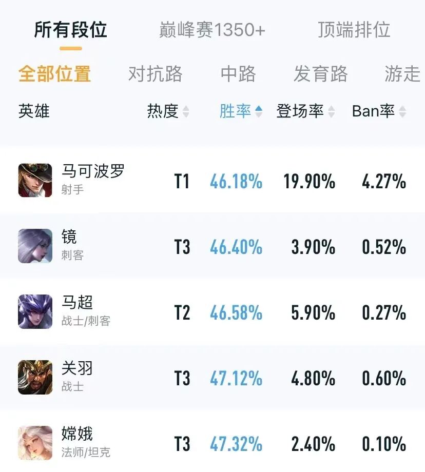 嫦娥很神奇,在全段位的胜率里排倒数第五,而在顶端排位里确实胜率第一,因此也是这批陷阱英雄里最陷阱的一个。