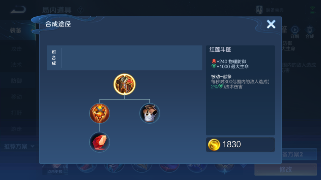 我们可以先看他的属性,240物理防御与1000最大生命值,每秒对300范围内的敌人造成自身最大生命值2%的法术伤害,也就是出的英雄越肉这件装备的收益才越高,在前期坦克可以出一个来清线,到了后期在团战中基本上不会打太久,被动也生效不了多久。