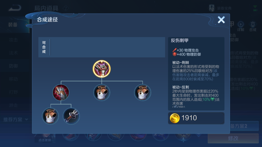 而本赛季的热门装备反甲,被动生效时即可对400范围内的敌人造成10%最大生命值的法术伤害,如果已经出了反甲,也可以出个不祥征兆,物理防御与生命值比红莲斗篷高,被动减少攻击者的攻速与移速对团队的收益也更大。