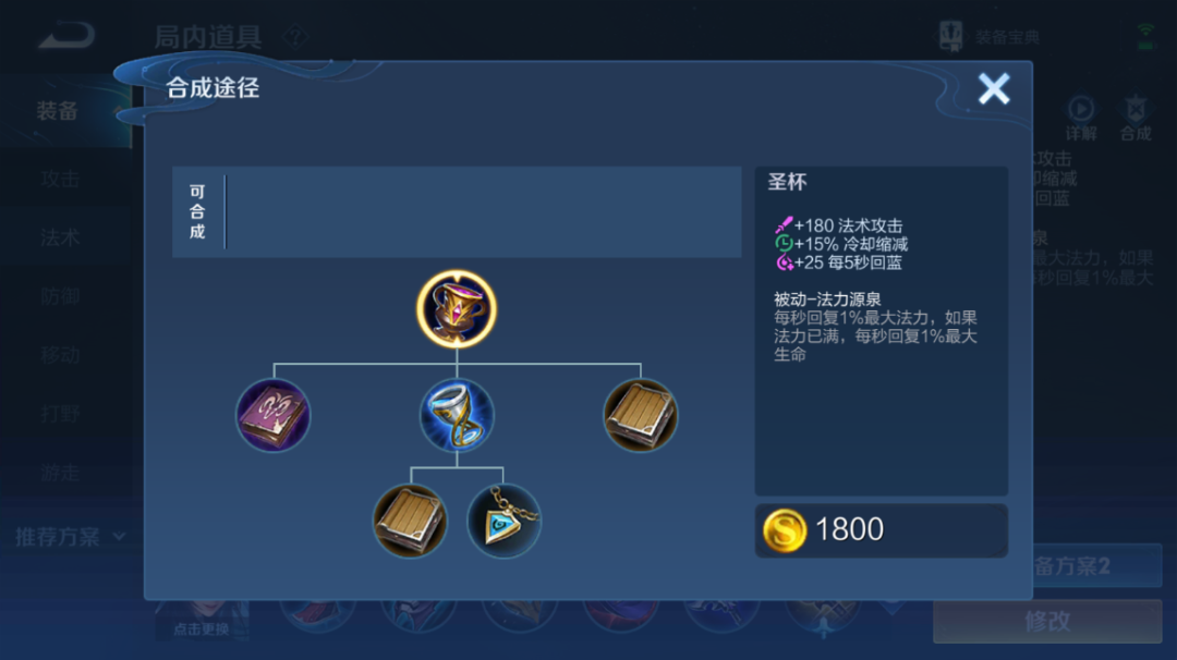 圣杯加强时曾经是大热门装备,削弱之后现在已经没有多少法师会出这件装备,虽然属性看起来很完美,但是到了后期的团战,打团都非常快,一旦法师被切那就是加再多冷却也是没用,所以圣杯换保命装或者防御装,容错率会高得多。