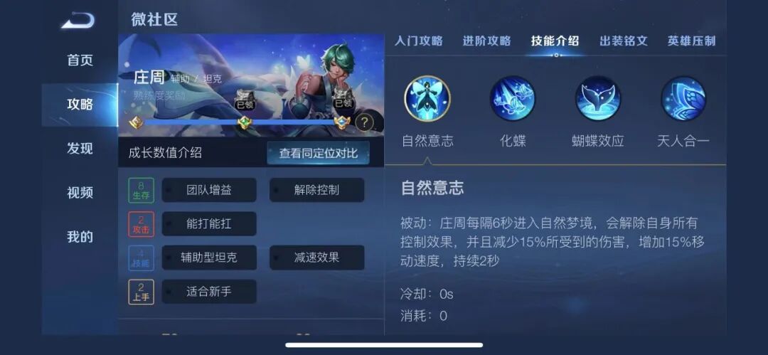 庄周应该是大部分新手刚接触这游戏时都玩过的英雄,用简单无脑来形容他毫不过分,不吃操作也不太需要意识,被抓也抓不死。正是因此,庄周在低分段出场率极高,无论是辅助边路还是打野位都能见到这大兄弟。