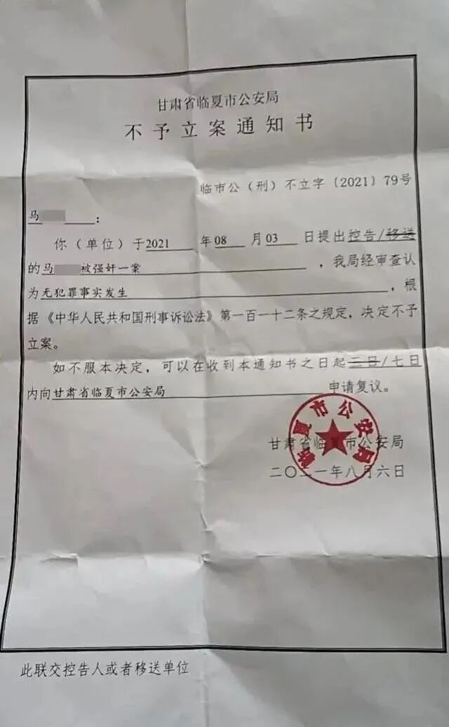 大约在一个月后,也就是2021年的9月3日,有关部门给出答复,经过审查,认为之前那份不予立案的通知书没有程序上的问题,坚持对那三个男网友不予逮捕的决定。
