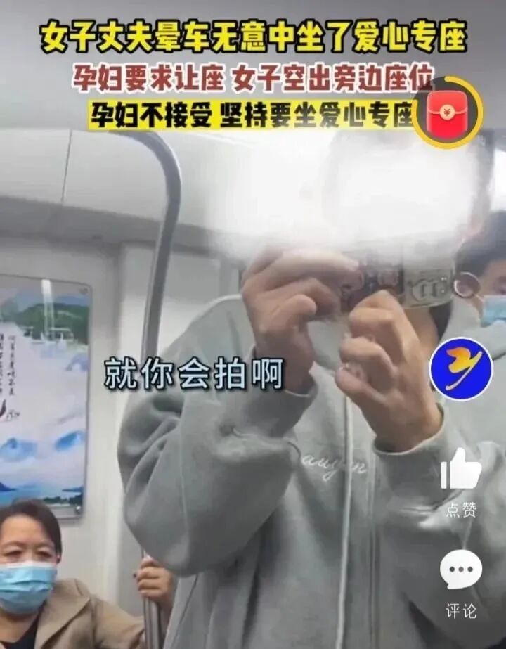 原本以为有了空位给那个孕妇就没事了,谁知,孕妇表示她不坐这个空位,一定要坐男子屁股下这个位置,这举动令夫妻俩有些错愕,难道男子坐的这个位置是镶嵌了什么金边或者被大师开过光,坐了之后就会有福报或者神灵庇佑?