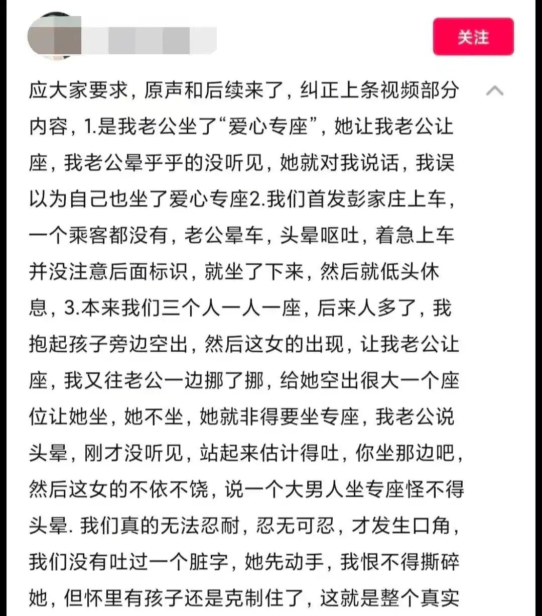 但是这个孕妇就是盯着男子屁股下的座位不放非要坐,看到男子不配合起身让座,开始冲着男子大喊:“爱心座位是留给孕妇和老人的,你一个大男人,你坐这里还要不要脸!”