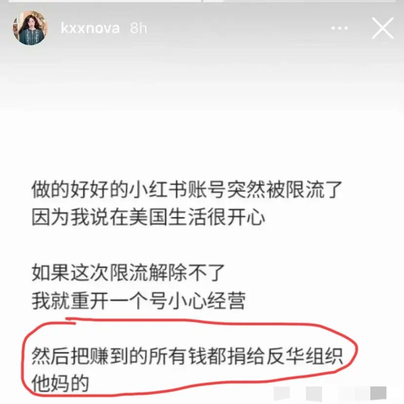 因为旧账号发表不当言论被禁言,就重新开小号,还警告这家网络平台,如果不把自己的限流解除,就好好经营账号小号,然后把赚到的所有的钱都捐给反华组织。