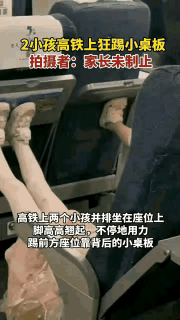 五一小长假期间,一个四川女孩乘坐高铁出行,坐在女孩后排的几个孩子受不了坐车的无聊,于是开始用脚狂踢前面的座椅靠背,以此为乐,看谁踢的又快又重。