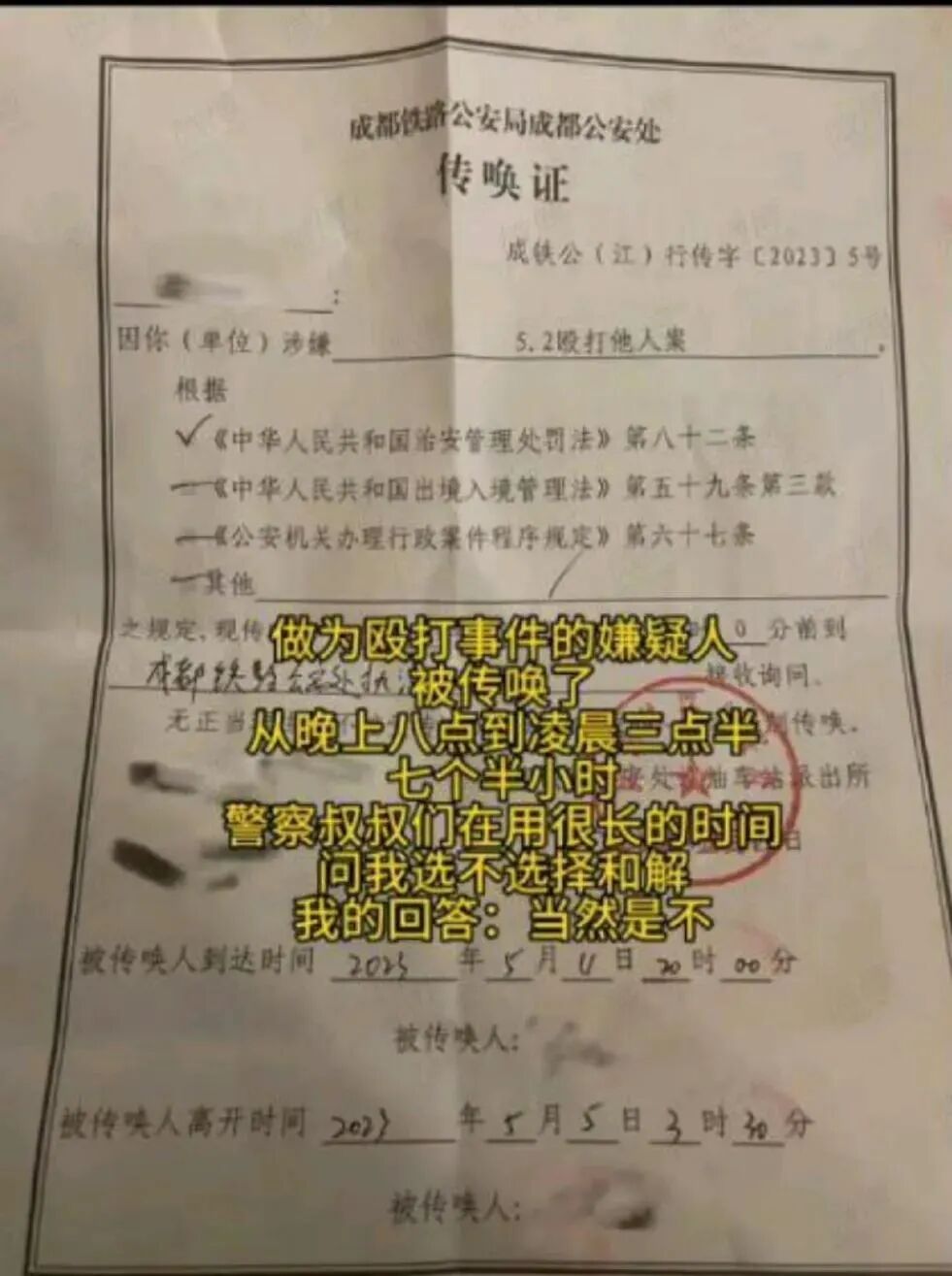 或许是看到东北大哥出面,大家暂时终止了这场争端。不过由于双方在高铁上发生了冲突,而且互相动了手,江油警方还是对双方进行了行政处罚,熊孩子一家先动的手,罚款500,女孩被打之后没控制住还了手,罚款200。