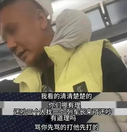 这时候旁边一个东北大哥看不下去,就站起来替女孩说话:“我看的清清楚楚的,你们三个人欺负人家小姑娘一个,你还有理了?列车长来了还吵。骂人是你们先骂的,打人也是你们先打的,你还有理了?”